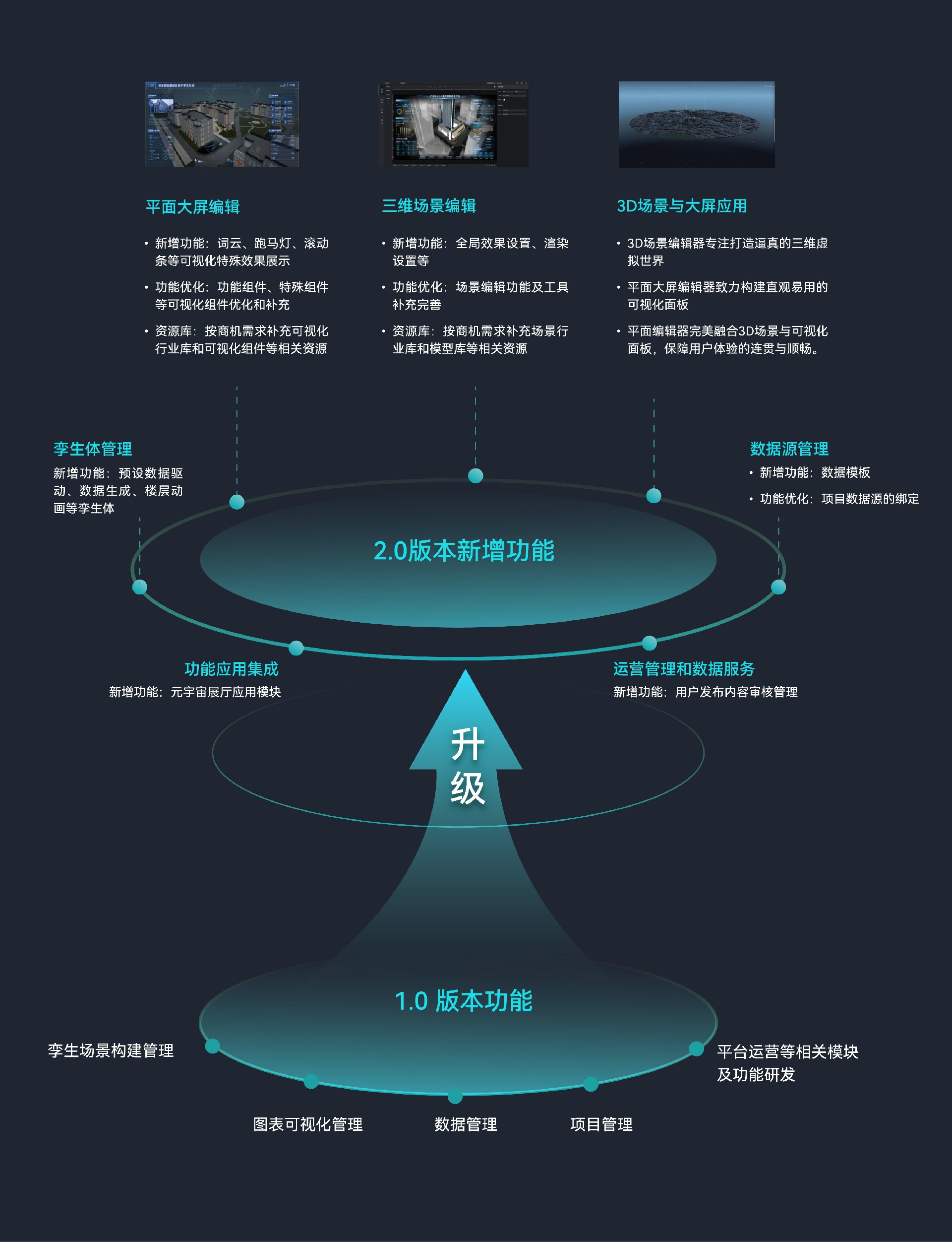 2023年,万象城对该平台在孪生体管理、3D场景与大屏应用、数据源管理等七大模块进行了功能升级。