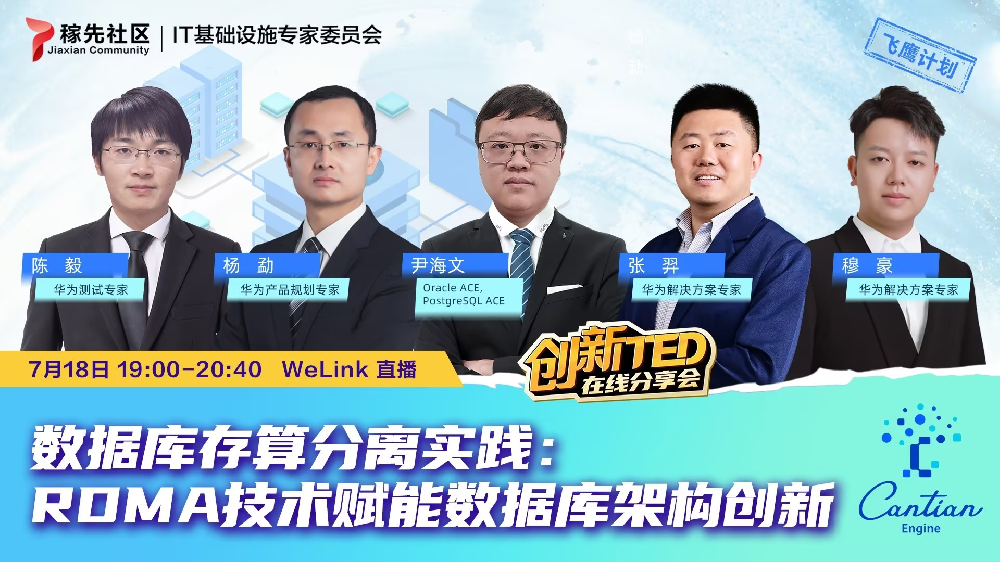 7月18日,万象城DBA总监、Oracle ACE尹海文先生应华为稼先社区与IT基础设施专家委员会之邀,在线上活动中精彩呈现了题为《引领存算分离新纪元:RDMA技术驱动数据库架构创新》的前沿技术演讲。此次分享聚焦于RDMA(Remote Direct Memory Access)技术与数据库领域的深度融合,不仅深入剖析了RDMA的核心机制及其对数据库性能