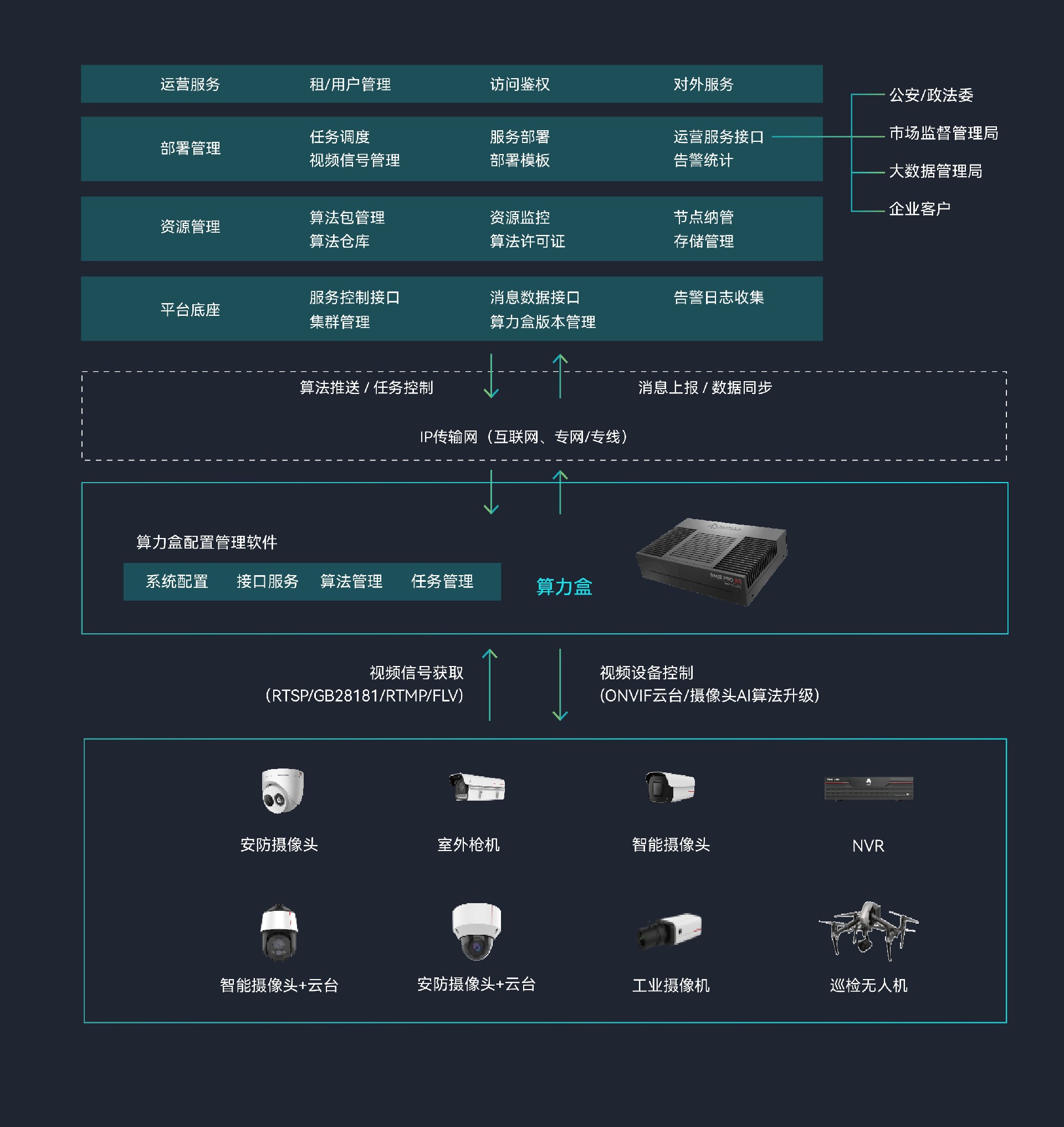 万象城推出的Sage Basic A1边缘计算微服务器,专为智能视频应用而设计。该服务器支持多路视频编解码,高效适配市 场上所有AI算法,能够轻松应对各类智能视频分析任务。其应用领域广泛,涵盖智慧城市、智慧园区、智慧乡村、智慧校园 以及智慧安防等多个AI应用场景。此外,视频AI边缘算力盒产品包含云边协同管理系统、边缘算力盒配置管理软件以及算力 盒终端三部分,能够实现边缘侧的AI处理和快速响应,同时借助云边协同技术,可随时随地灵活部署检测任务和算法,为用 户带来前所未有的便捷和高效体验。